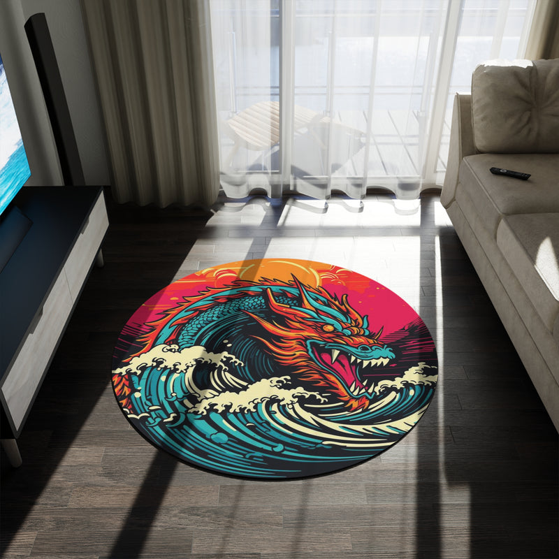 Dragon Wave Round Rug — Vibrant Ocean Dragon Boho Floor Mat