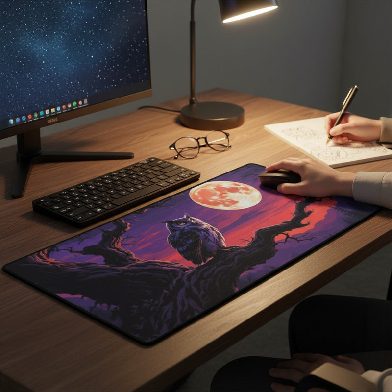 Owl Moon Desk Mat — Mystical Nightscape Desk Pad for Gamers & Creatives