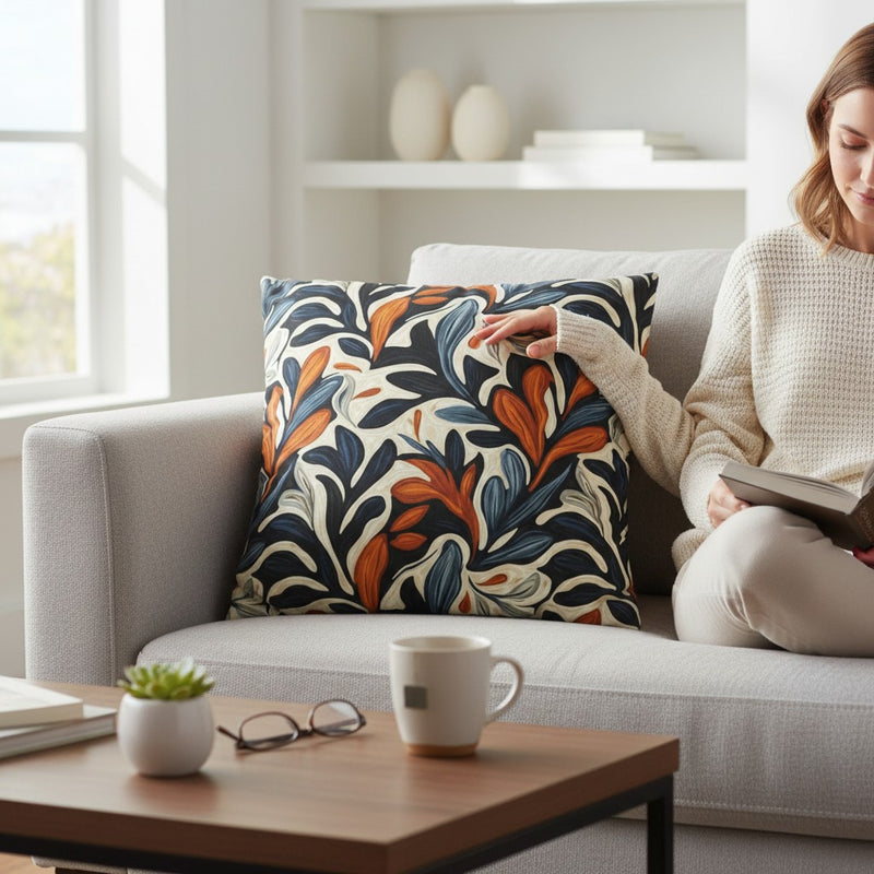 Abstract Floral Throw Pillowcase — Navy, Rust & Cream Decorative Pillow Cover