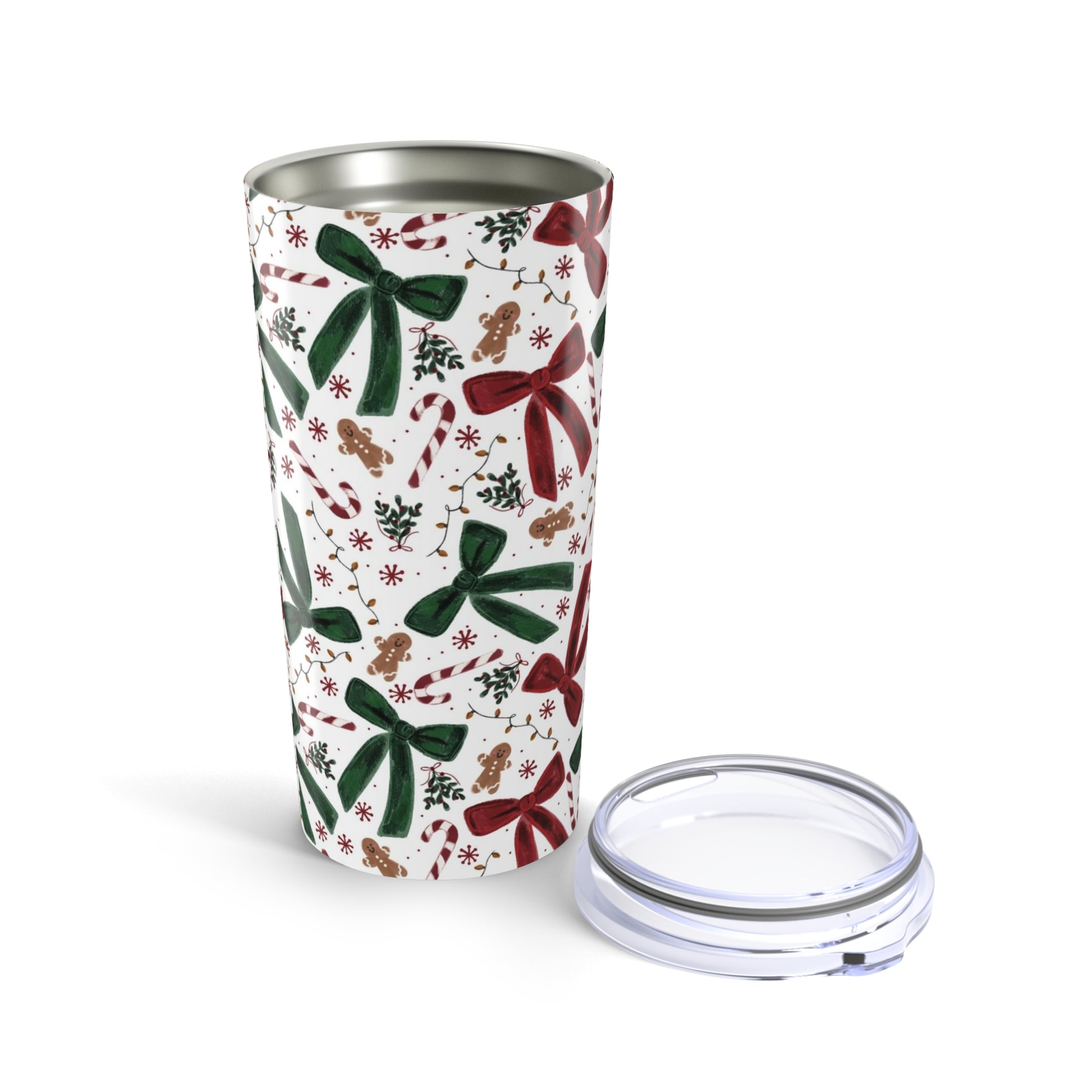 20oz Holiday Bow Tumbler — Candy Cane & Gingerbread Christmas Travel Cup