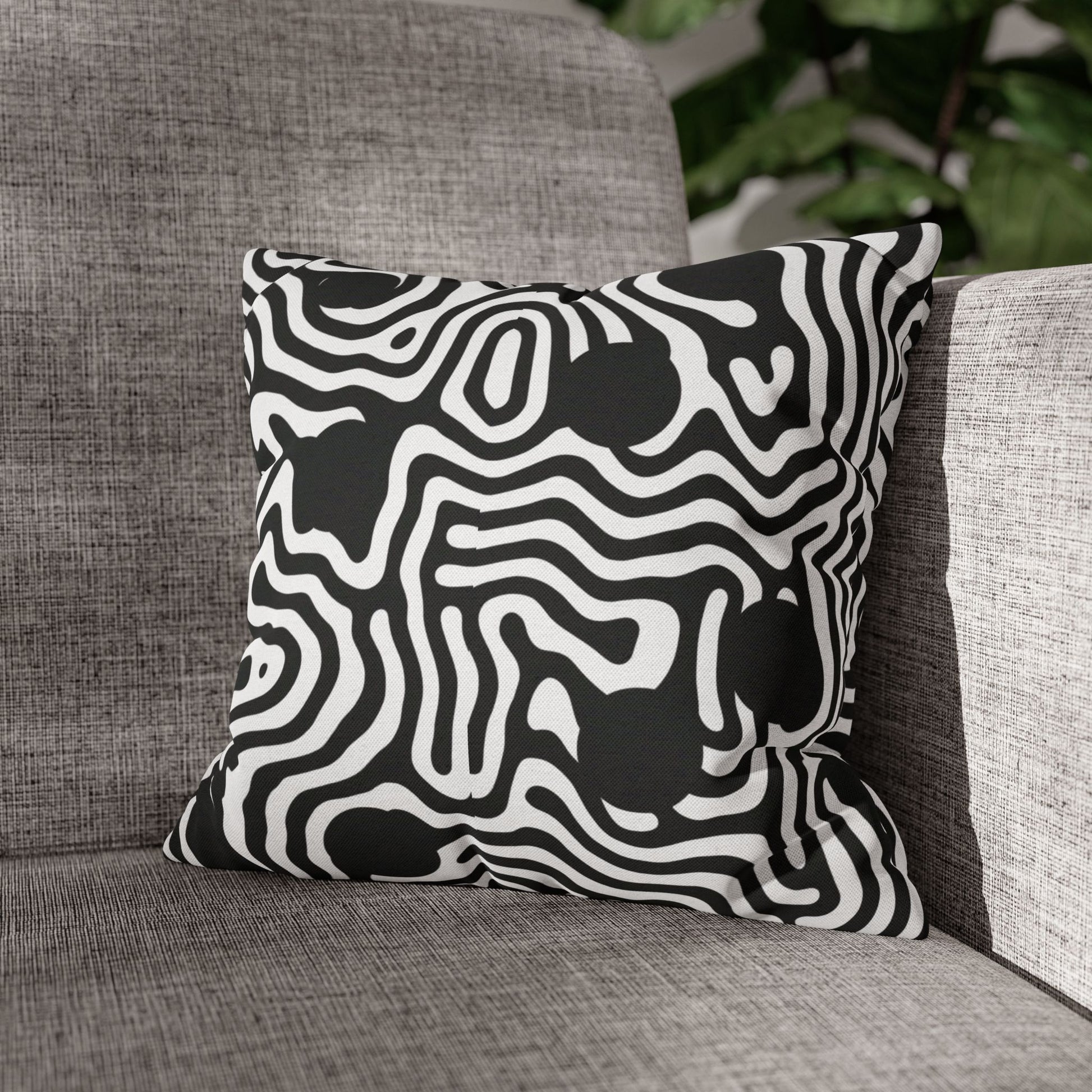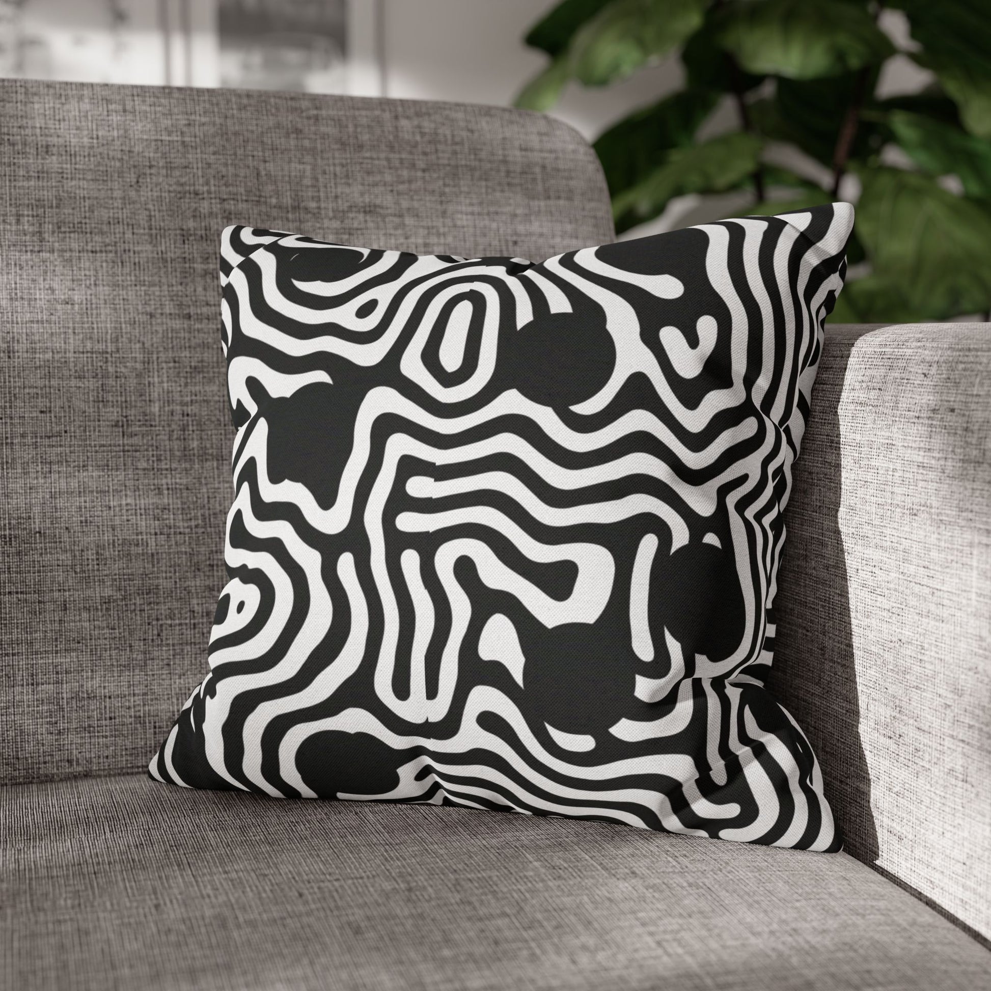 Abstract Black & White Swirl Pillowcase — Modern Geometric Throw Pillow Cover