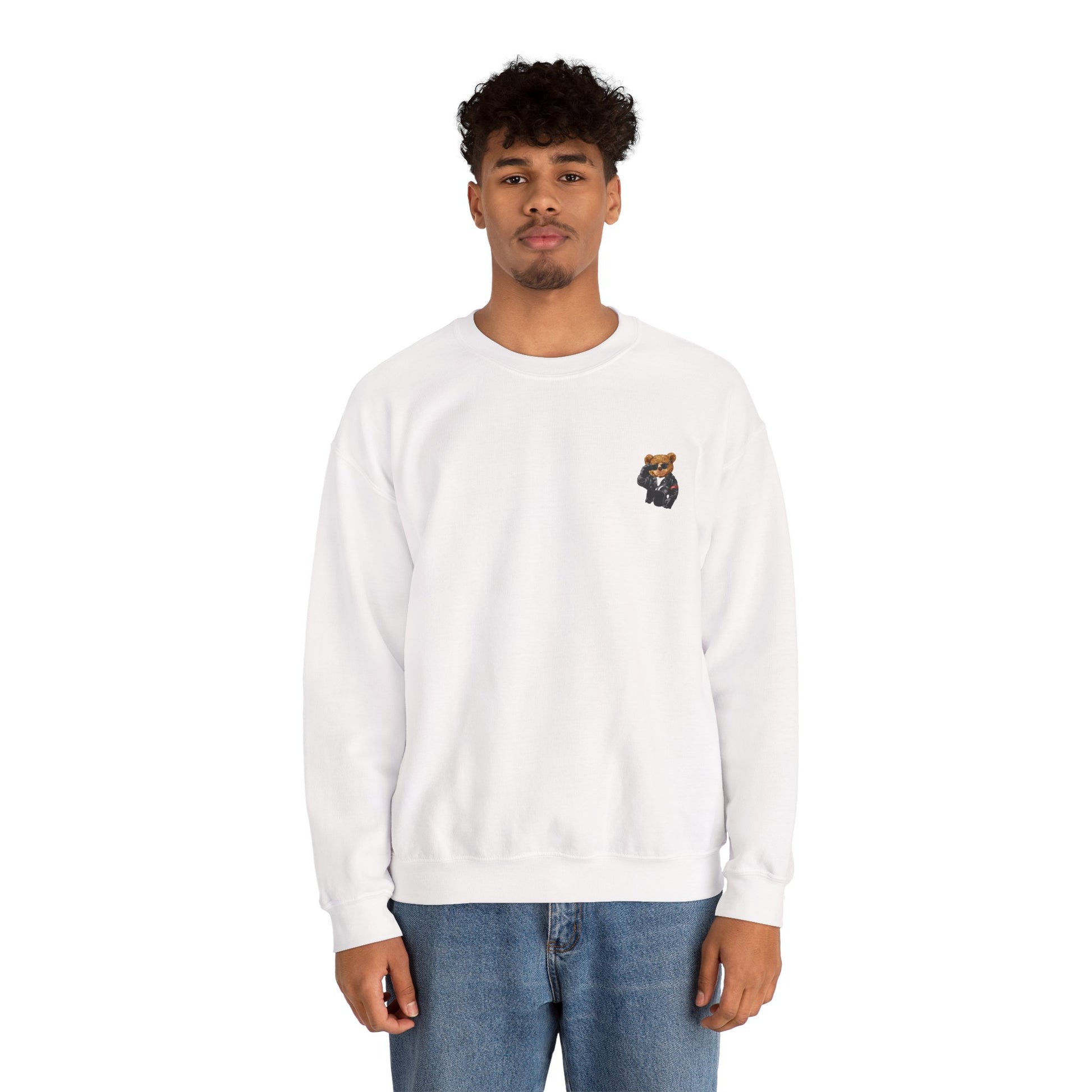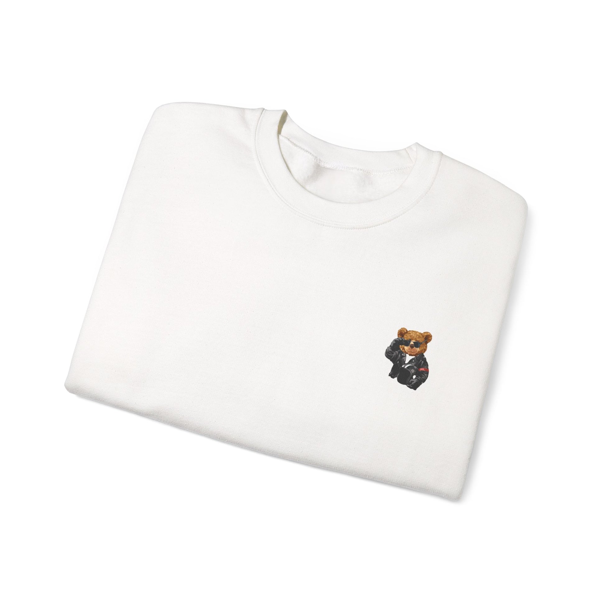 Bear Graphic Sweatshirt — Teddy Bear in Leather Jacket Crewneck