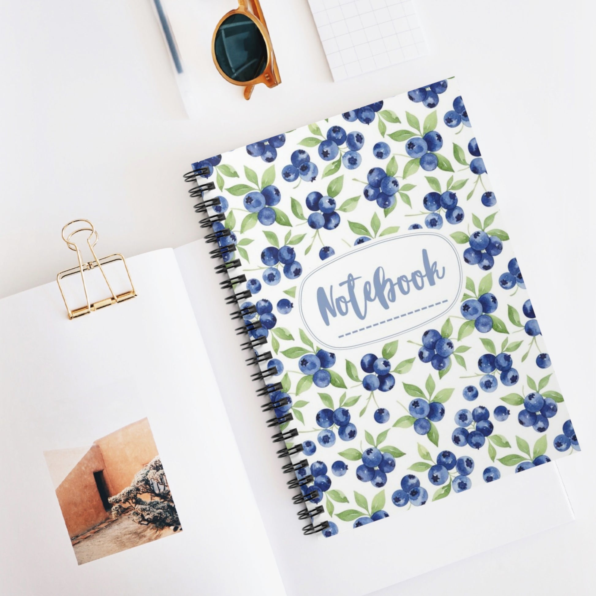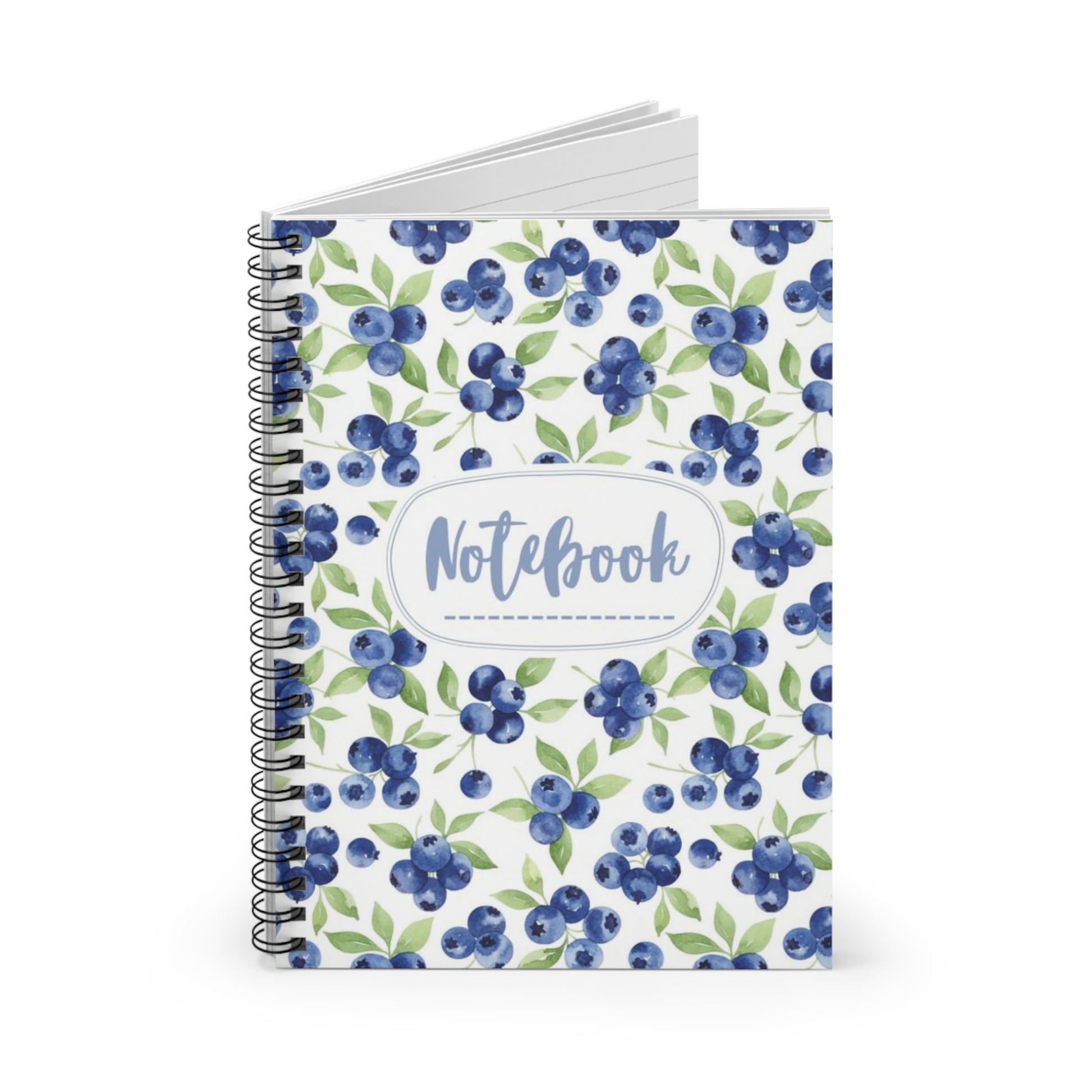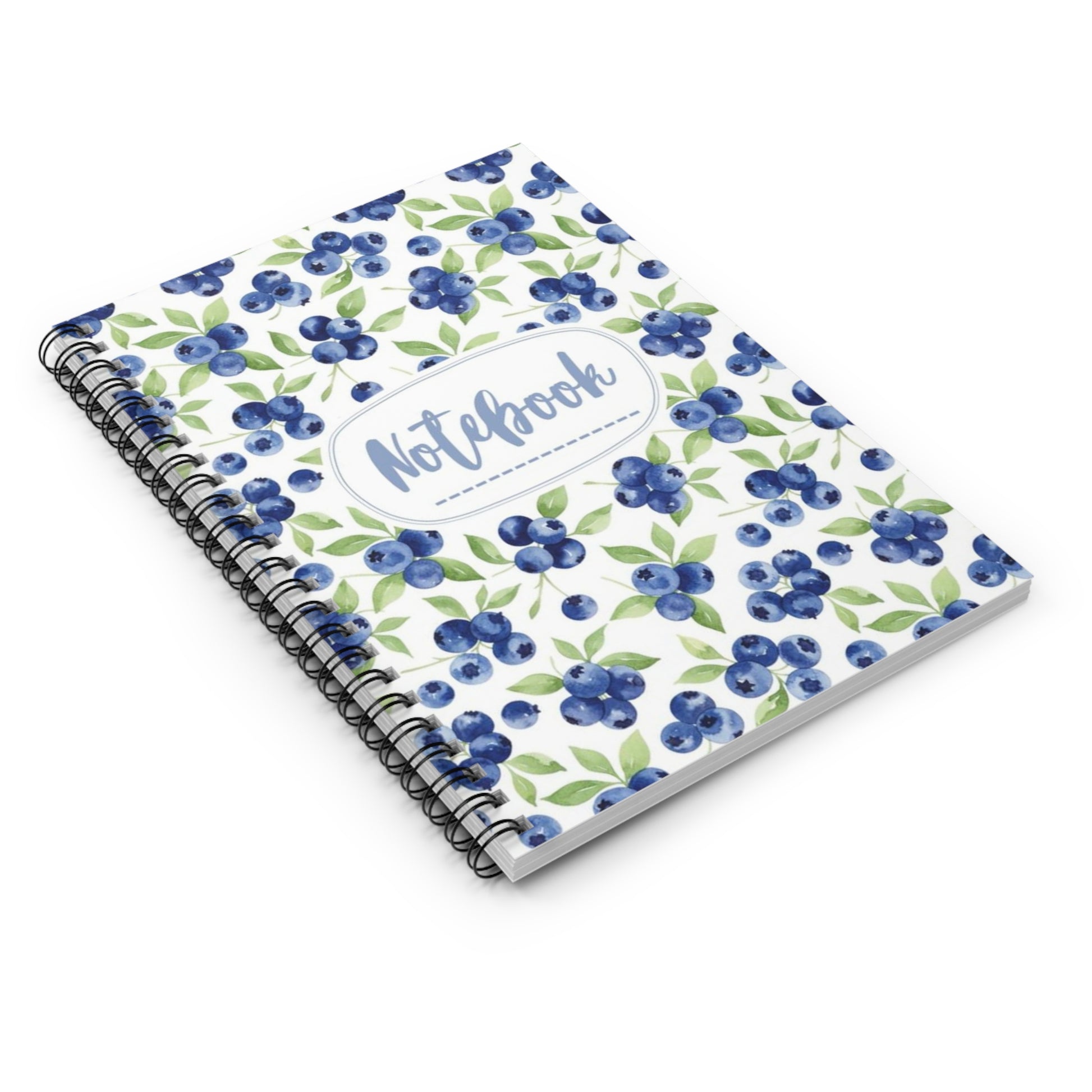Blueberry Floral Spiral Notebook – Ruled Journal with "Notebook" Script Cover