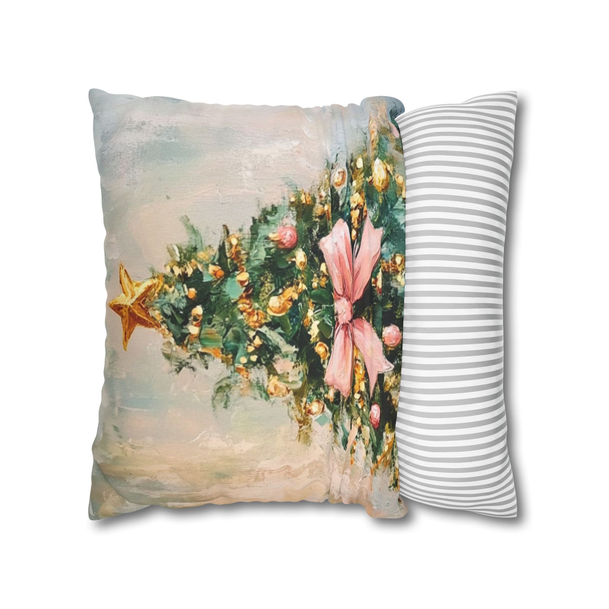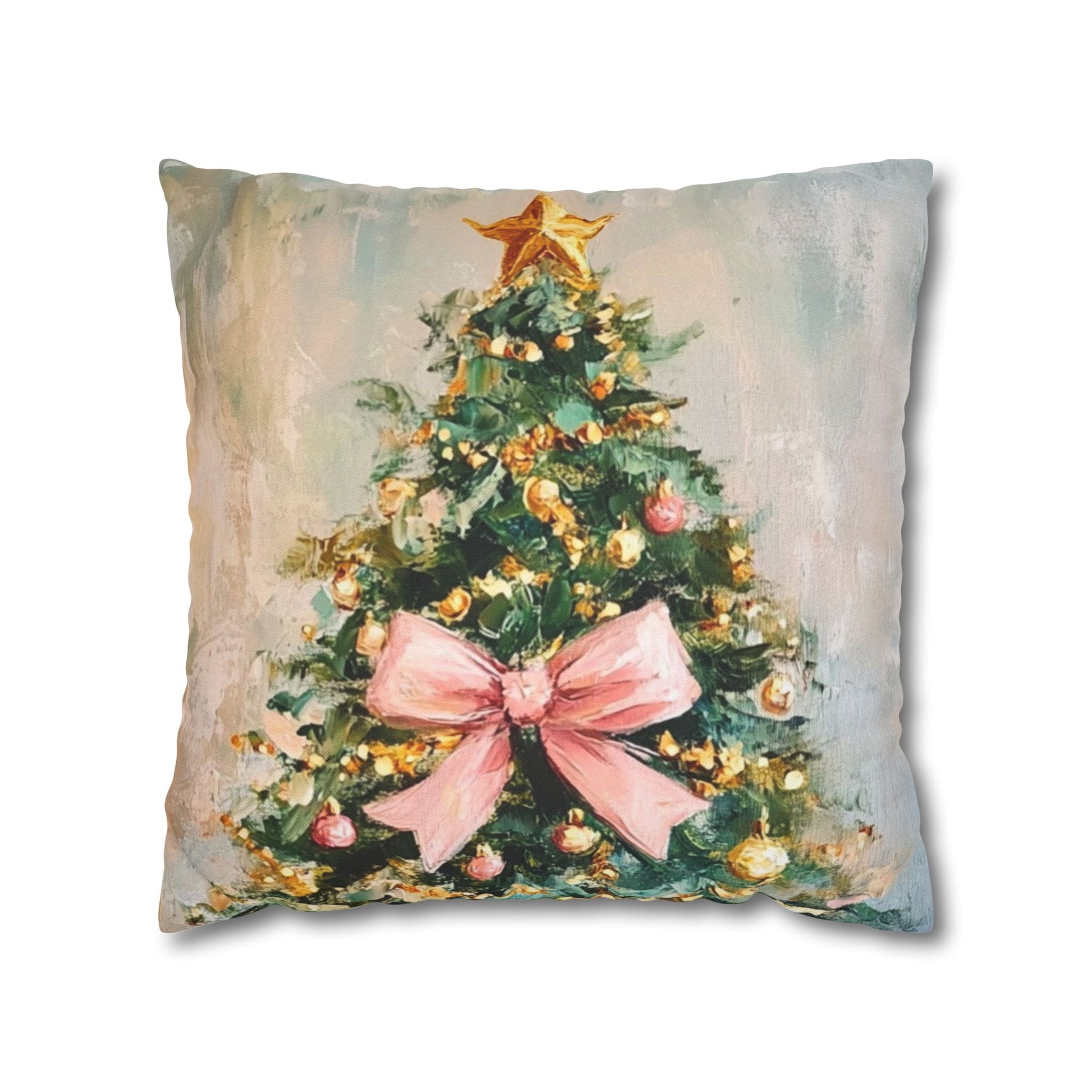 Christmas Tree Pillowcase with Pink Bow – Holiday Decorative Throw Pillow Cover
