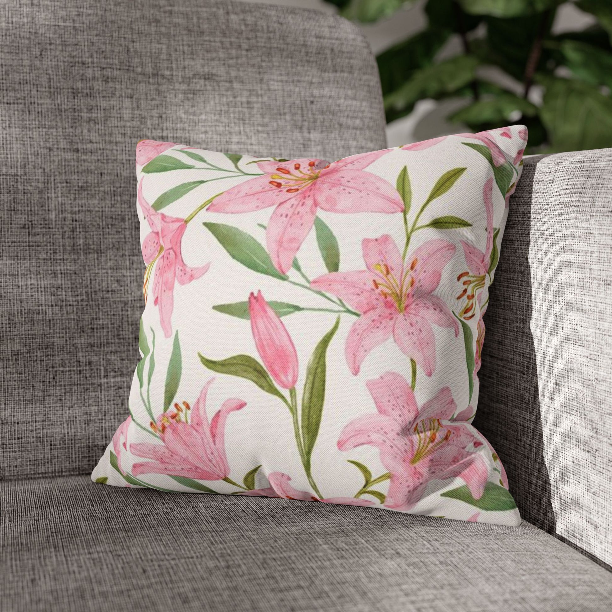 Floral Lily Pillowcase — Pink Watercolor Botanical Square Pillow Cover
