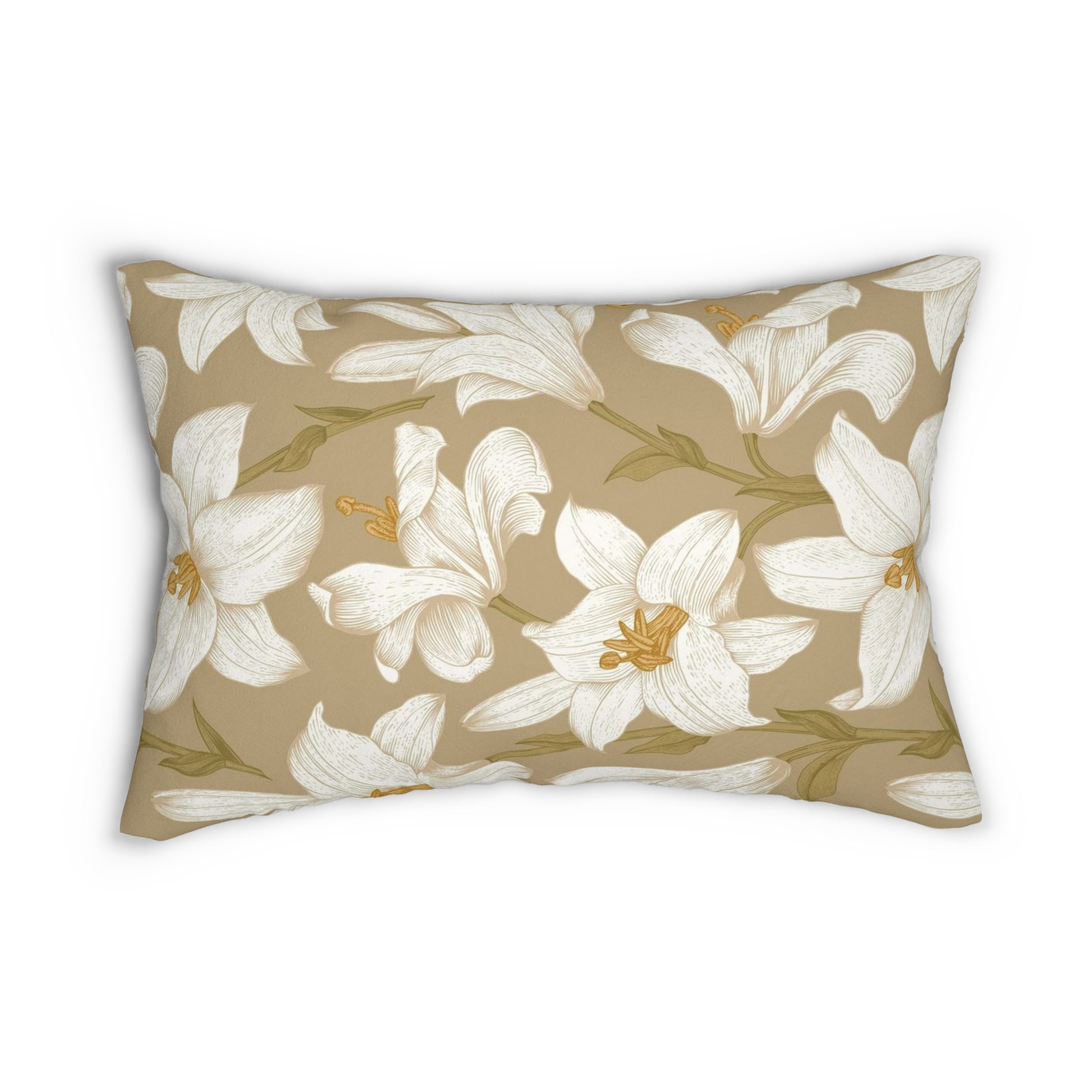 Floral Magnolia Lumbar Pillow — Neutral White Magnolia Print Accent Pillow