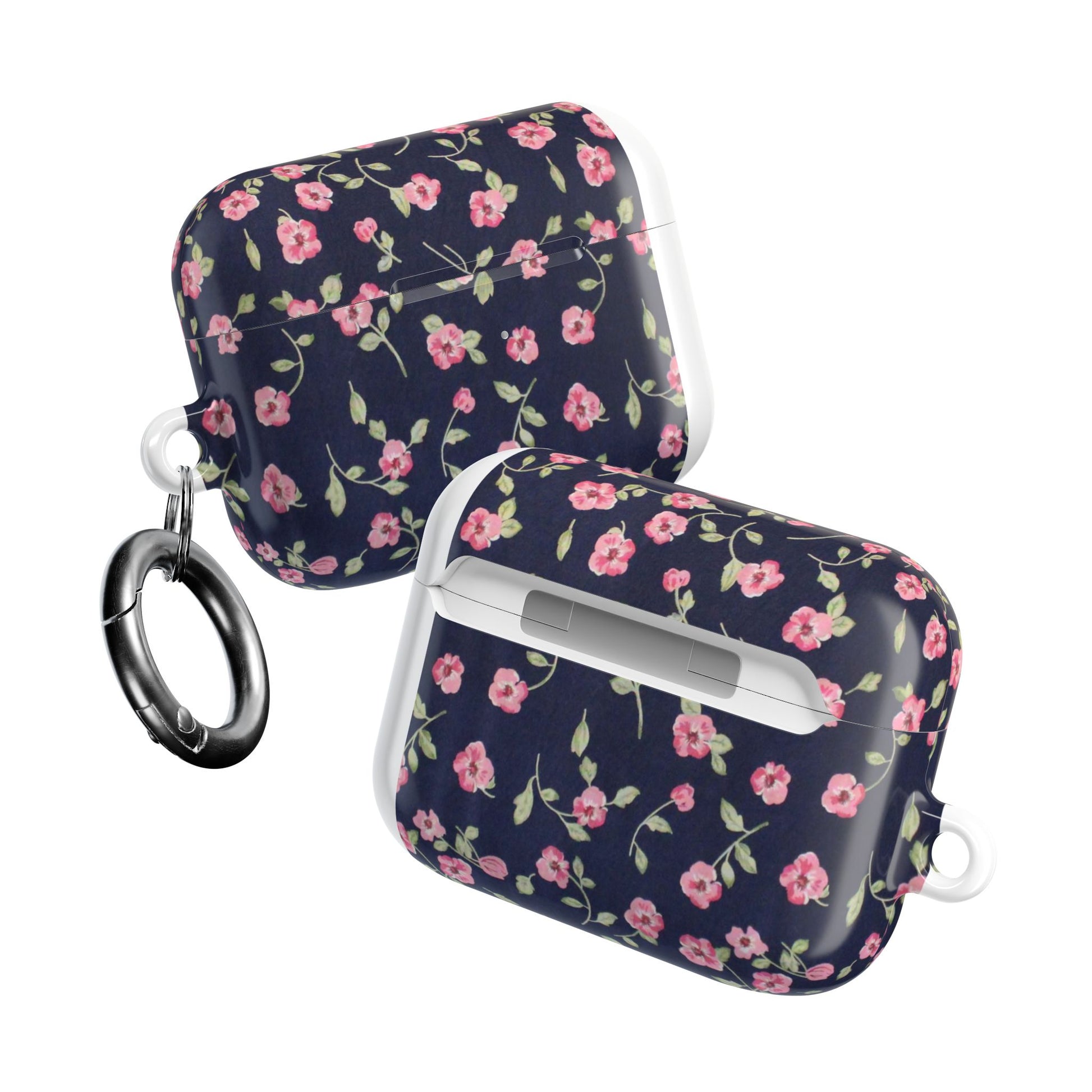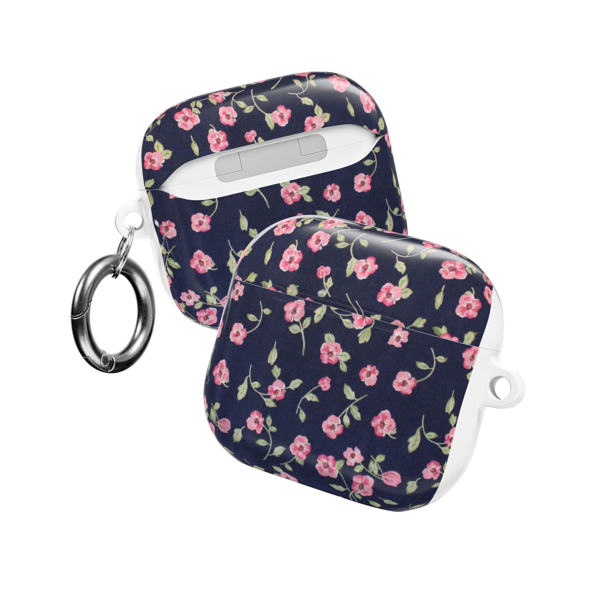 Floral Navy Pink Blossoms AirPod Case — Cute Protective Wireless Earbud Cover