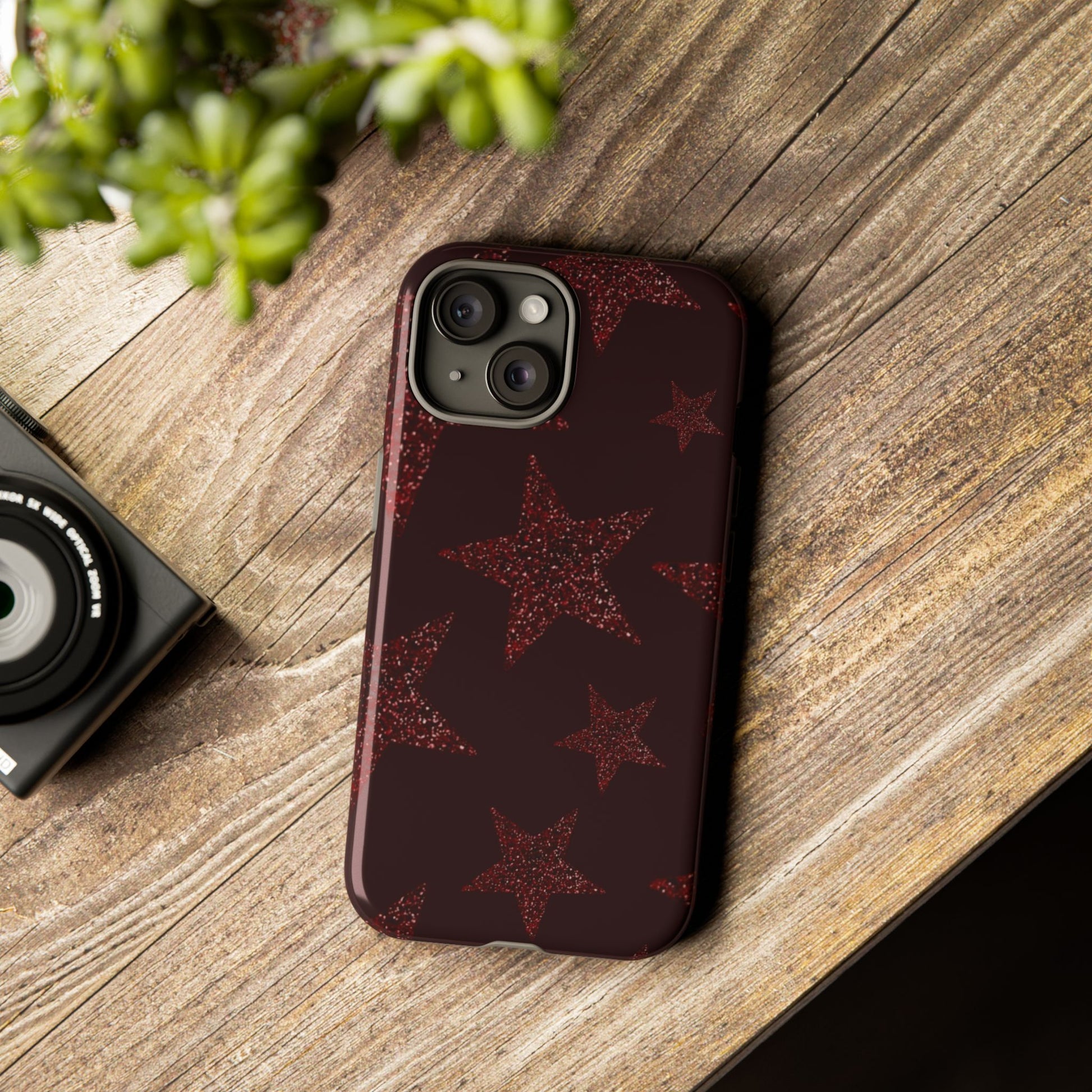 This slim, dual-layer phone case combines glossy or matte style with serious protection. A deep, moody background sets off scattered, glittery red stars—subtle from afar, textured up close—so your phone reads as refined and a little rebellious. The rigid polycarbonate shell absorbs impacts while the TPU silicone liner cushions drops and resists daily wear. Full 3D wrap printing keeps the design continuous around the edges, and UV protection preserves color outdoors. Clear port openings and wireless-charging compatibility keep the case practical for everyday use. Notes on care are included to maintain finish and longevity.