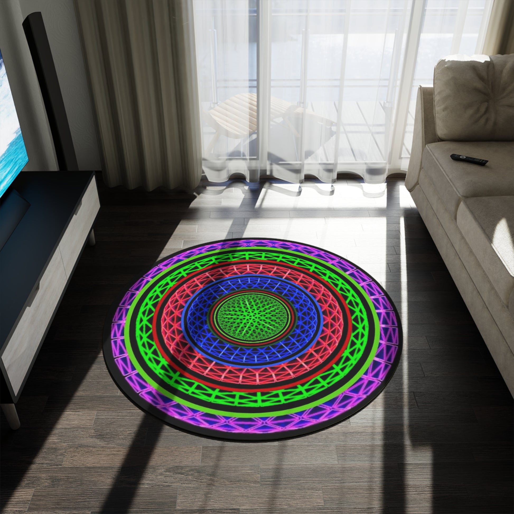 Psychedelic Geometric Round Rug — Neon Mandala Floor Mat