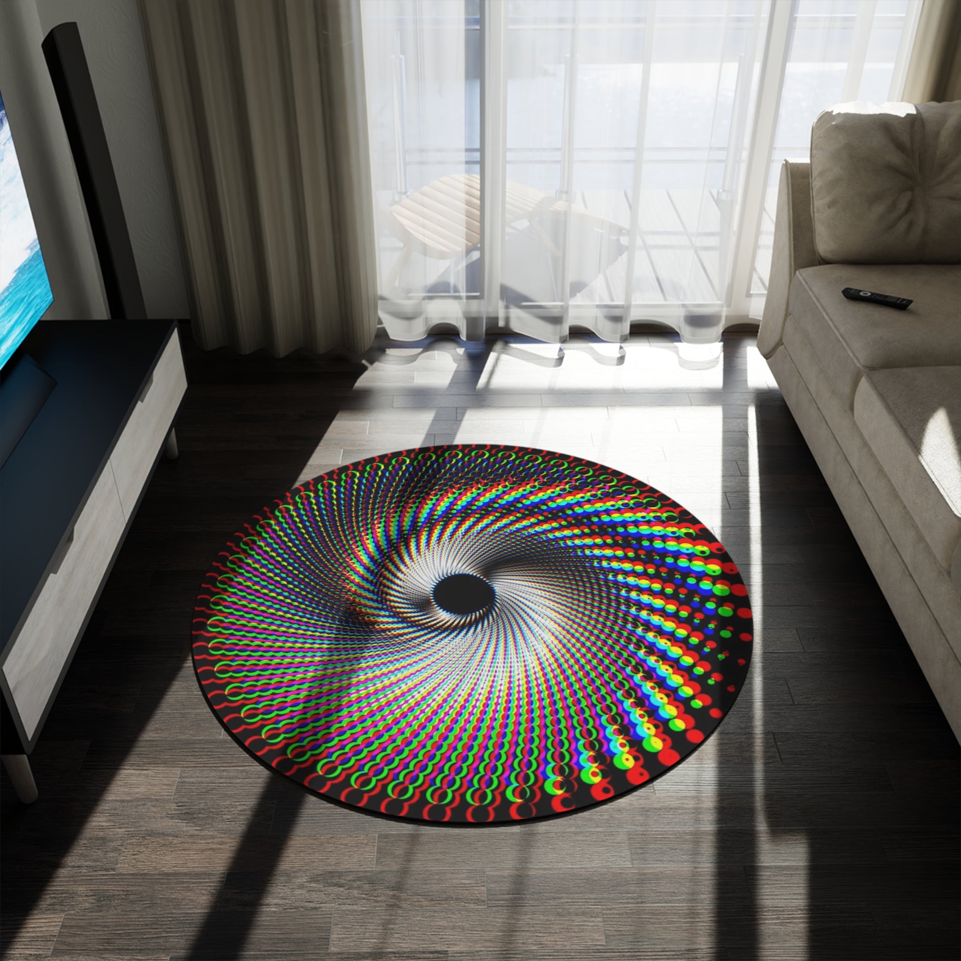 Psychedelic Spiral Round Rug — Colorful Optical Illusion Accent Mat