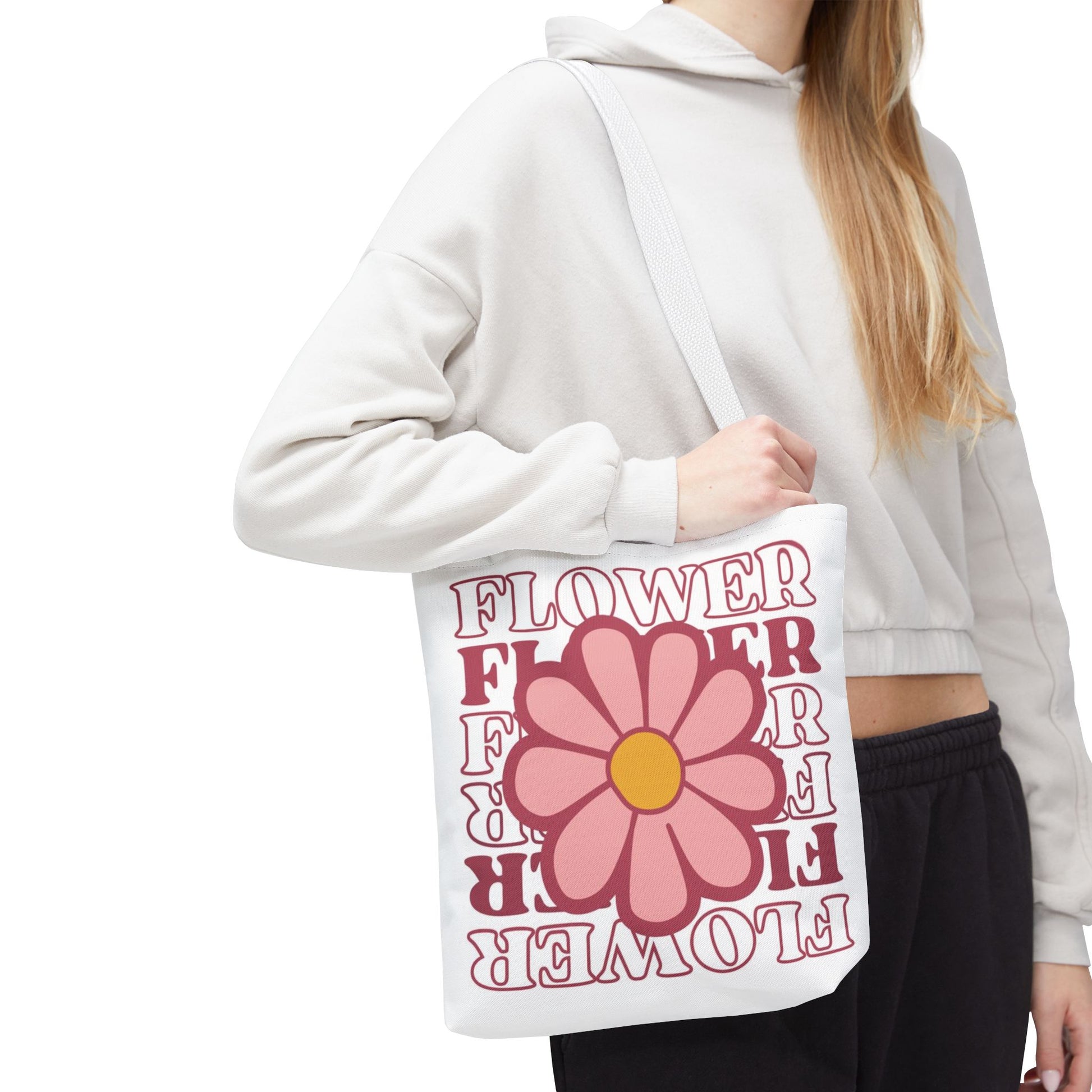 Retro Pink Flower Tote Bag – 'FLOWER' Graphic AOP Market Tote