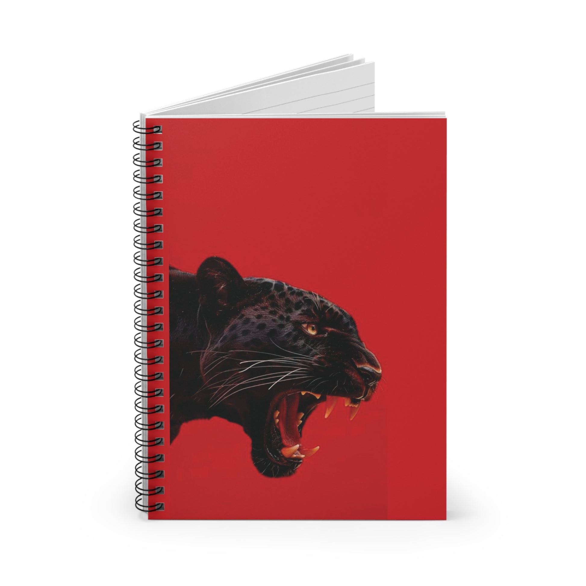 Roaring Black Panther Spiral Notebook — Red Cover Ruled Journal